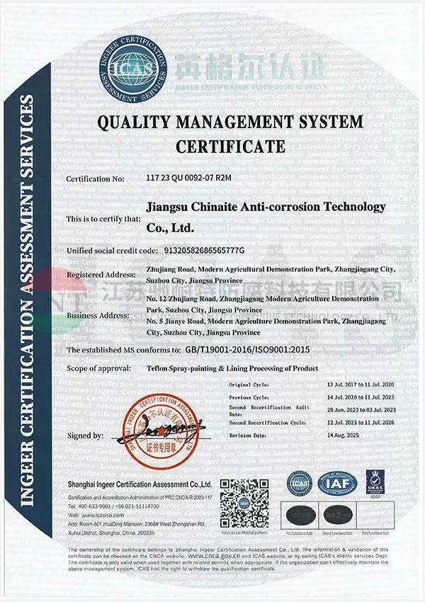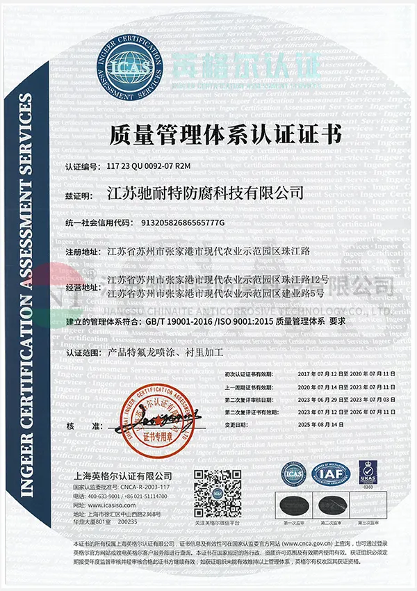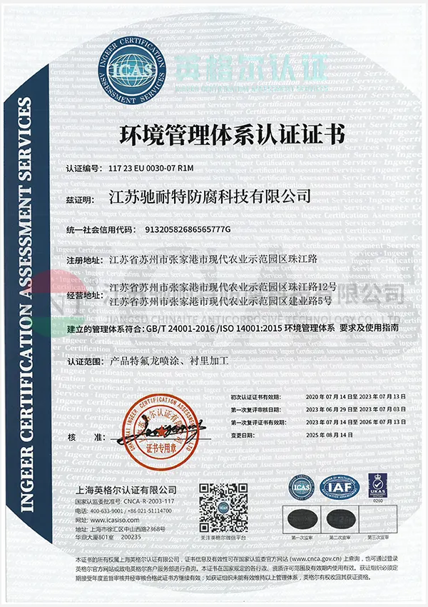 江苏驰耐特防腐科技集团公司,从事特氟龙防腐多年,占地几万平方米,下设3个分公司。主要经营:半导体高纯 PFA 喷涂、半导体内衬 PFA 和 PTFE;工业级、卫生级(四氟喷涂、 PFA 喷涂、 halar 喷涂、哈拉喷涂、 ECTFE 喷涂、F46喷涂、 ETFE 喷涂、F40喷涂);喷涂最大直径5.5米,喷涂最长18.5米;内衬四氟最小直径0.6米,内衬四氟最大尺寸不限制,无法运输的可现场施工;有设备设计和制造、防腐总包能力。