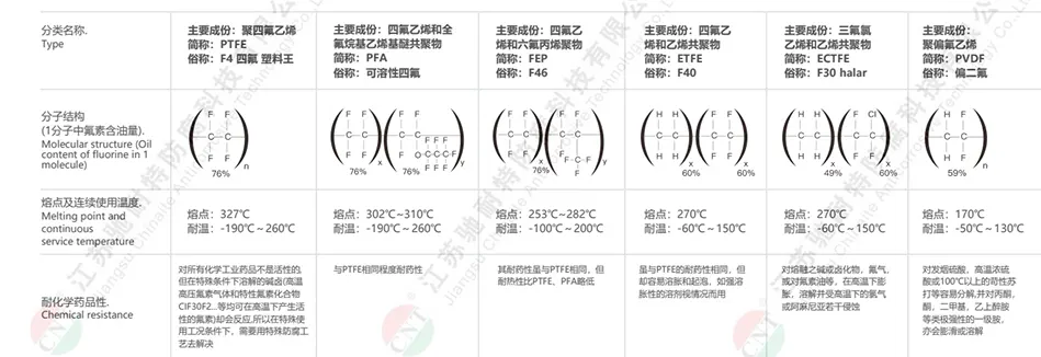 各种特氟龙特性比较